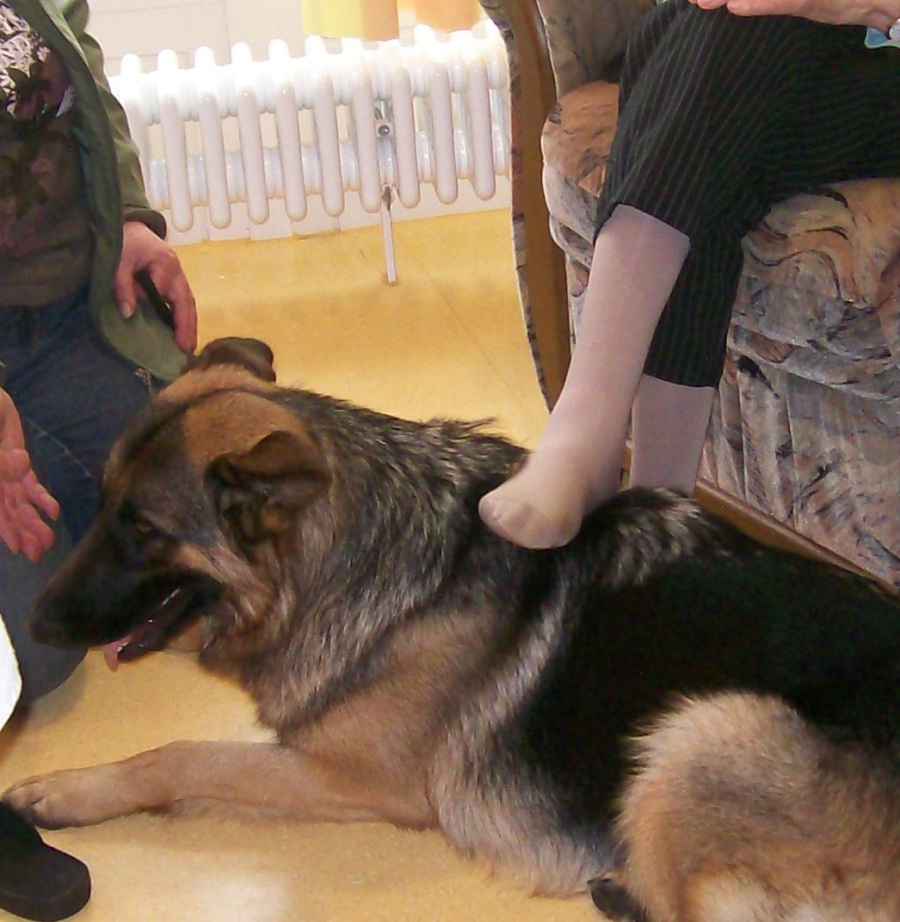 Auch die besuchten Leute freuten sich, wenn Laika zu Besuch kam. Sie lief neben den Menschen, die im Rollstuhl saßen, nebenher ohne Probleme.